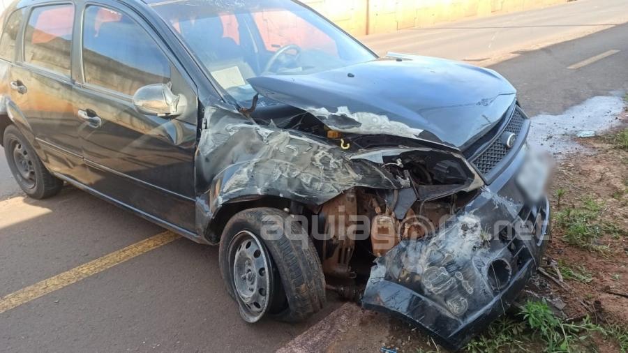 Segundo o jovem que conduzia o carro, ele foi fechado por uma motocicleta que seguia no mesmo sentido e por isso teria batido na mureta.