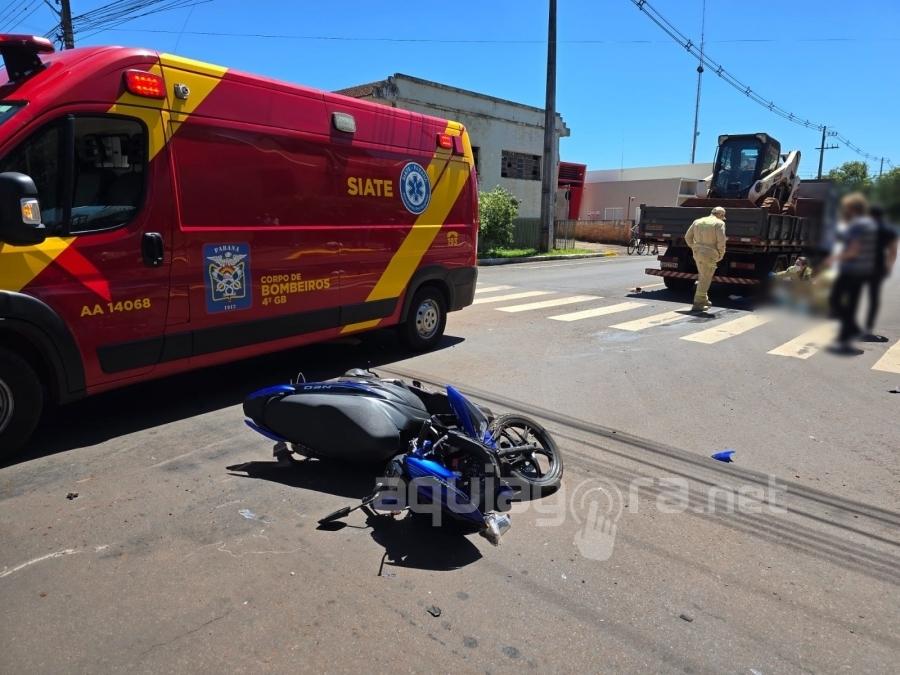 A colisão envolveu uma motocicleta Yamaha Neo e um caminhão, e aconteceu no cruzamento das ruas Pernambuco e 7 de Setembro.