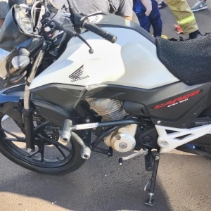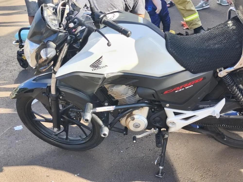 A ocorrência foi atendida por uma equipe do Corpo de Bombeiros no cruzamento da Rua Santa Catarina com a Rua Colombo, área central da cidade. O acidente envolveu uma motocicleta Honda CG 160 Cargo, de cor branca, e um automóvel Nissan Kicks S DCT CVT, também branco.