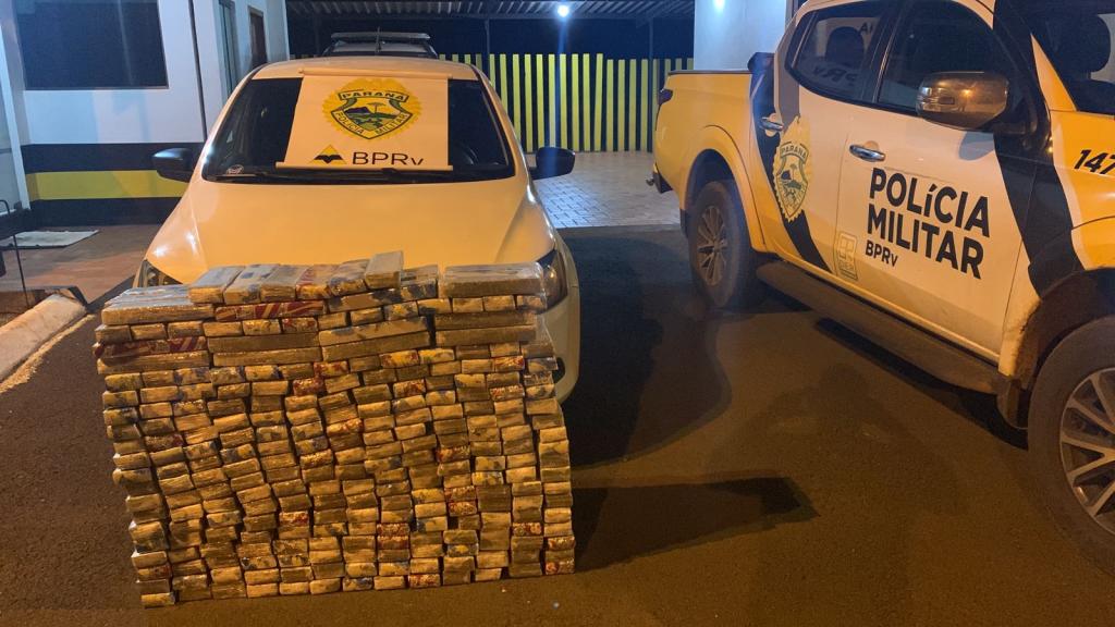 Policiais rodoviários que realizavam fiscalização de trânsito no início da noite desta quinta-feira (25) na rodovia estadual PR-488, zona Rural de Diamante do Oeste e abordaram o veículo VW/ Gol, cor branca com placas de Chapecó/SC.