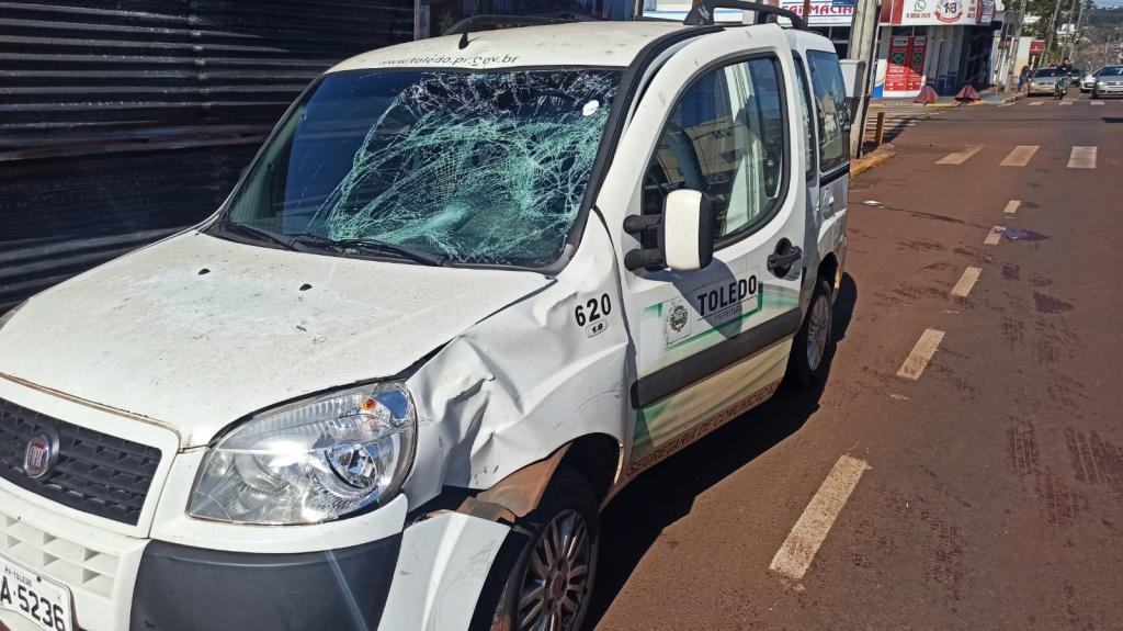 O jovem conduzia uma bicicleta pela rua Piratini e bateu contra um veículo da prefeitura municipal de Toledo em baixo do semáforo.