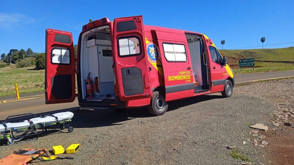 O motociclista sofreu escoriações e possível fratura em uma das mãos, sendo encaminhado ao hospital para atendimento médico.