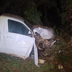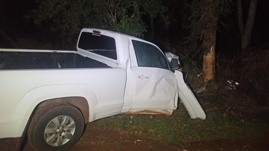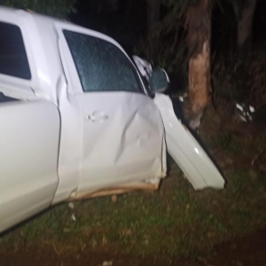 Na noite desta quinta-feira na rodoviária PR182 próximo ao trevo que dá acesso comunidade de Boa Vista em Toledo uma caminhonete Volkswagen Amarok com placas Mercosul conduzida por um jovem de 22 anos ficou destruída ao bater em uma árvore.