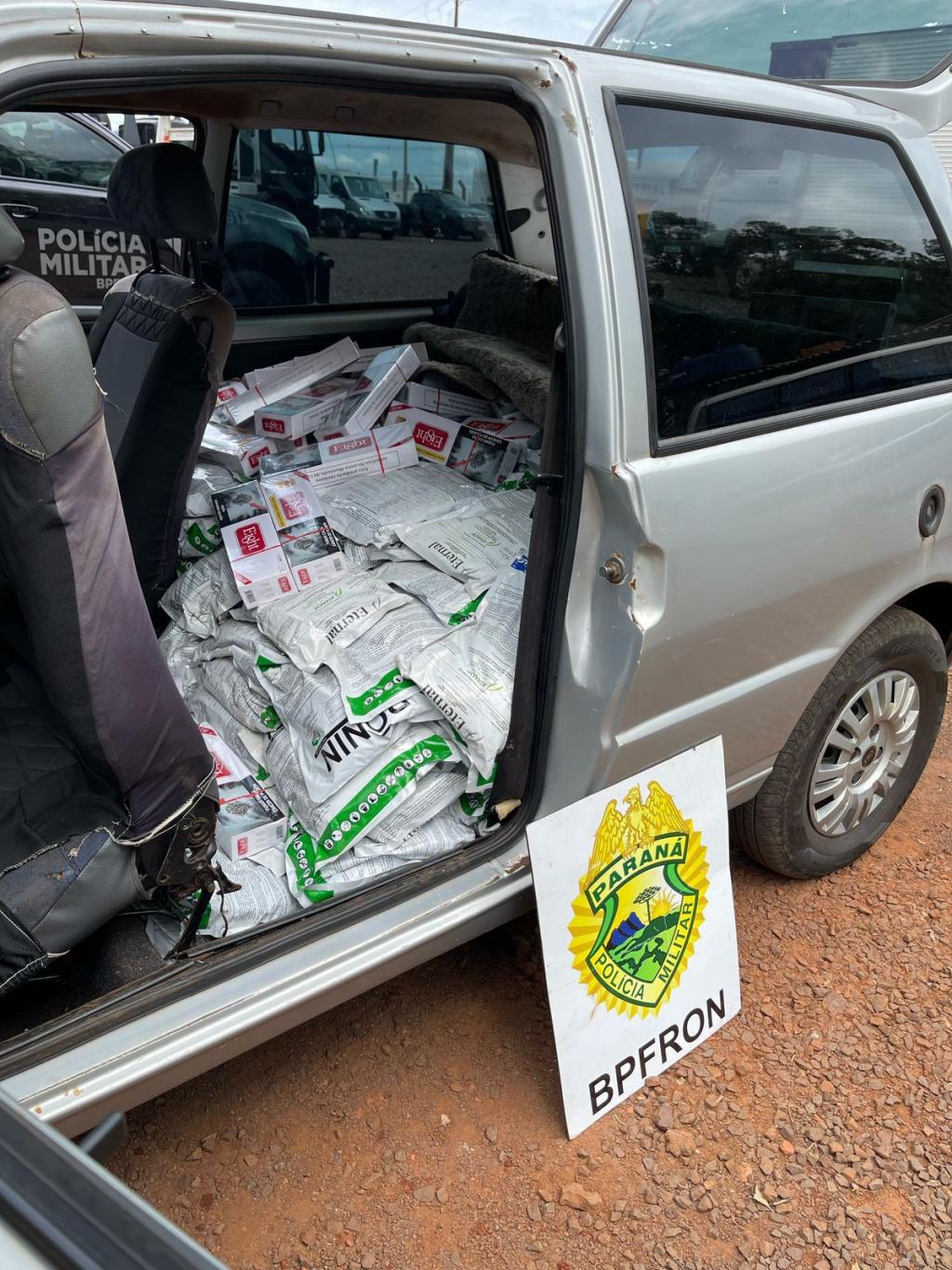O condutor obedeceu à ordem de parada e, durante a revista pessoal e documental, nada de ilícito foi encontrado com ele. No entanto, ao inspecionar o interior do veículo, os policiais localizaram uma carga de 300 quilos de agrotóxicos e 50 pacotes de cigarros de origem paraguaia.