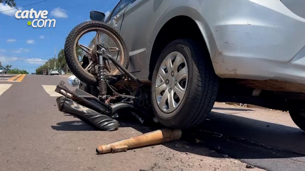 De acordo com informações apuradas, um veículo Ford Ka trafegava pela Rua Tubinambás, enquanto um ciclomotor, popularmente conhecido como bicicleta motorizada, seguia pela Rua Parecis. No cruzamento das vias, ocorreu a colisão e, com o impacto, o ciclomotor ficou preso sob o automóvel.