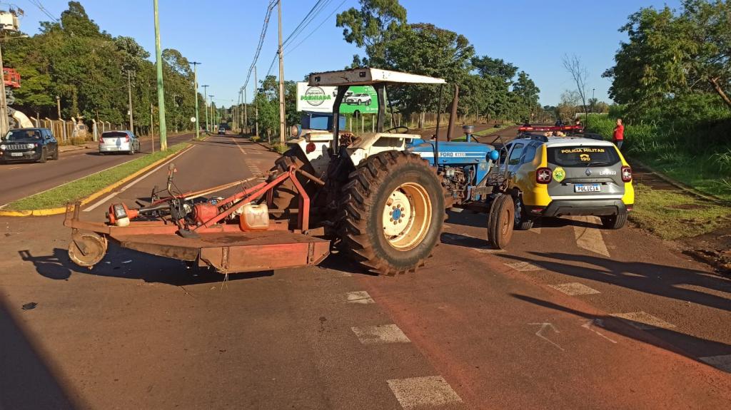 A moto Honda CG Fan de 125 cilindradas conduzida por um jovem de 22 anos colidiu contra um trator na manhã de hoje na rua Carlos Barbosa no bairro Tocantins em Toledo.