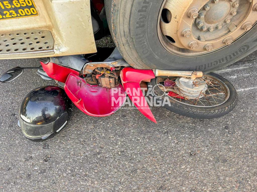 A condutora da motoneta Honda Biz seguia no sentido a Maringá, quando no cruzamento com a Avenida Pioneira Maria Cavalcante, foi atingida pela carreta. A motocicleta chegou a ser arrastada e ficou embaixo dos rodados da carreta.