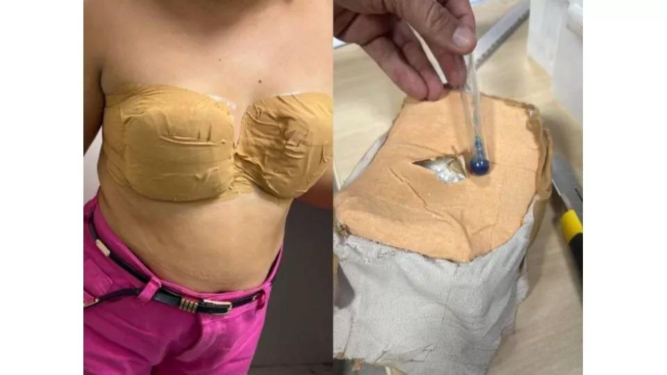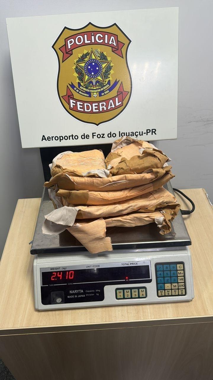 Uma jovem de 23 anos foi detida com cocaína presa ao corpo no Aeroporto de Foz do Iguaçu, no Oeste do Paraná, na noite de quarta-feira (21).