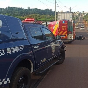 Na tarde desta segunda-feira (13), por volta das 17h50, Toledo foi palco de um grave acidente de trânsito na avenida Senador Atílio Fontana, próximo ao Posto Senador. O incidente envolveu uma carreta Volvo câmara fria e uma moto Honda CG Titan 160, ambas com placas do Mercosul.