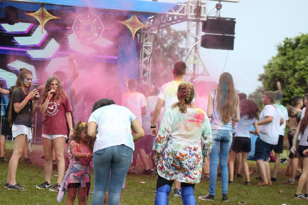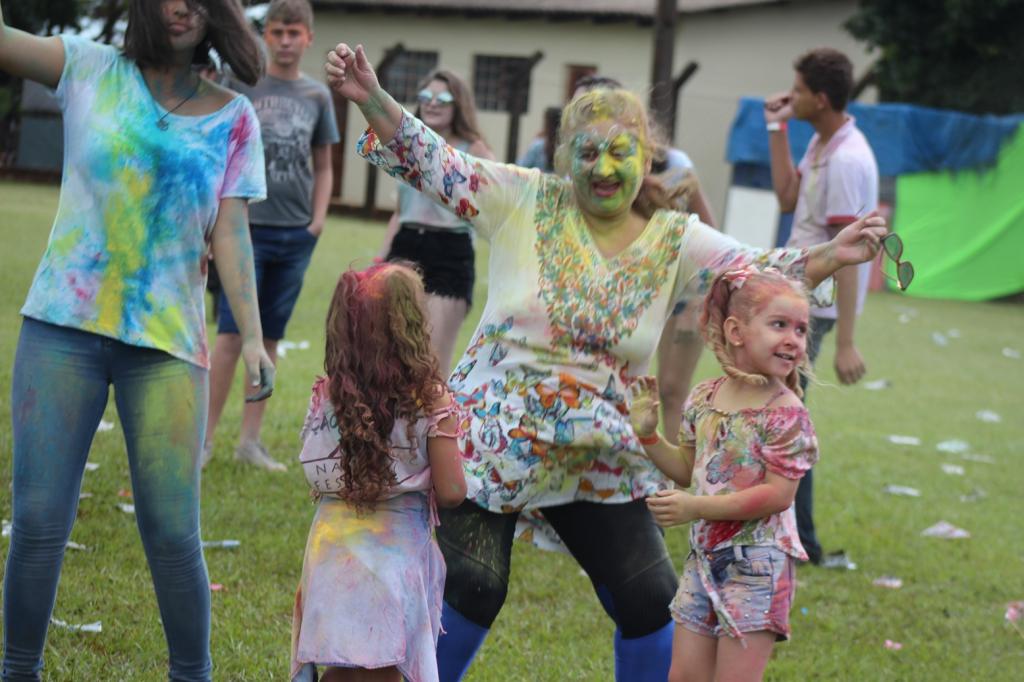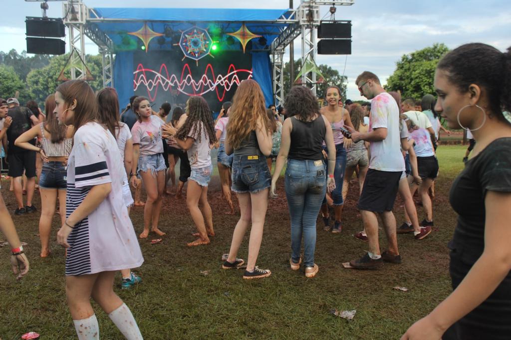 Nem mesmo a chuva, que caiu intensamente no meio da tarde de sábado, serviu para tirar o ânimo e reduzir a energia positiva que moveu jovens, crianças e adultos a pular e dançar durante a After Colors, em Maripá, neste sábado, 16. Realizada pela primeira vez em Toledo, em novembro no ano passado, a After Colors foi levada neste final de semana para Maripá, atendendo um compromisso da Kahena Espaço Natural, com um grupo daquela cidade. Eles participaram da festa em Toledo e pediram o evento também fosse levado para a sua cidade.