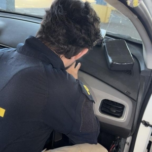 Na vistoria, os policiais encontraram um compartimento oculto no painel dianteiro, onde estavam escondidos 17,19 kg de pasta base de cocaína e 7,71 kg de cloridrato de cocaína, totalizando 24,90 kg da droga. O entorpecente estava embalado em tabletes envoltos por fita isolante.