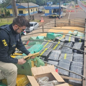Uma grande quantidade de drogas foi apreendida pela Polícia Rodoviária Federal (PRF), nesta terça-feira (17), durante fiscalização na BR-163 em Lindoeste, no Oeste do Paraná.