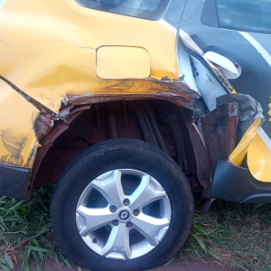 Com o impacto o barco atingiu a lateram do carro policial que saiu da pista. O motorista continuou a fuga por uma área de mata, o barco se desprendeu do carro, o motorista e outros dois passageiros saíram do veículo e pularam a cerca do Parque Luiz Carlos Hoffman e fugiram a pé. Um cerco foi formado no local com equipes da ROTAM, RPA de Ouro Verde e Vila Nova, um cão de faro auxiliou nas buscas.