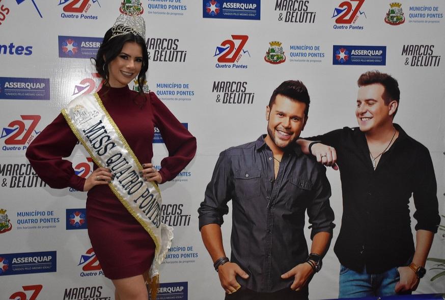 O prefeito João Laufer comenta que é um orgulho trazer Marcos e Belutti para Quatro Pontes. “Eles tem reunido grande público. E em conversa com os membros da CCO, optou-se por esta dupla. Nossos cofres não serão onerados, pois temos vários recursos do governo estadual e federal. Assim, será possível oferecer uma linda festa para o povo quatropontense, em especial. Ainda durante os festejos ocorrerão importantes inaugurações, como o asfalto rural, e toda a comunidade será convidada a participar”, conta.