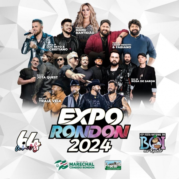 A Expo Rondon 2024, evento que celebrará os 64 anos de emancipação de Marechal Cândido Rondon, será lançada nesta sexta-feira (21), em ato programado para as 7h30, na Acimacar (Associação Comercial e Empresarial). A Expo Rondon acontecerá de 24 a 28 de julho, no parque de exposições.