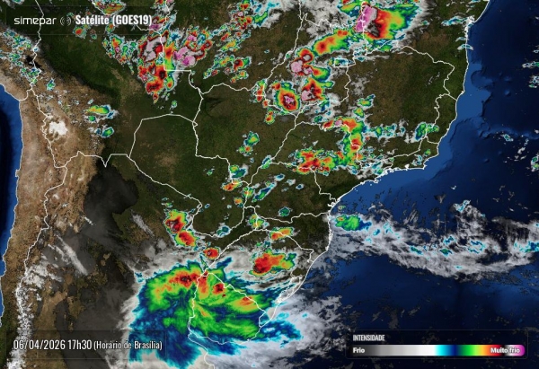 Esse cenário indica o avanço de áreas de instabilidade sobre o estado, favorecendo mudanças no tempo, especialmente entre o interior e o Oeste do Paraná.