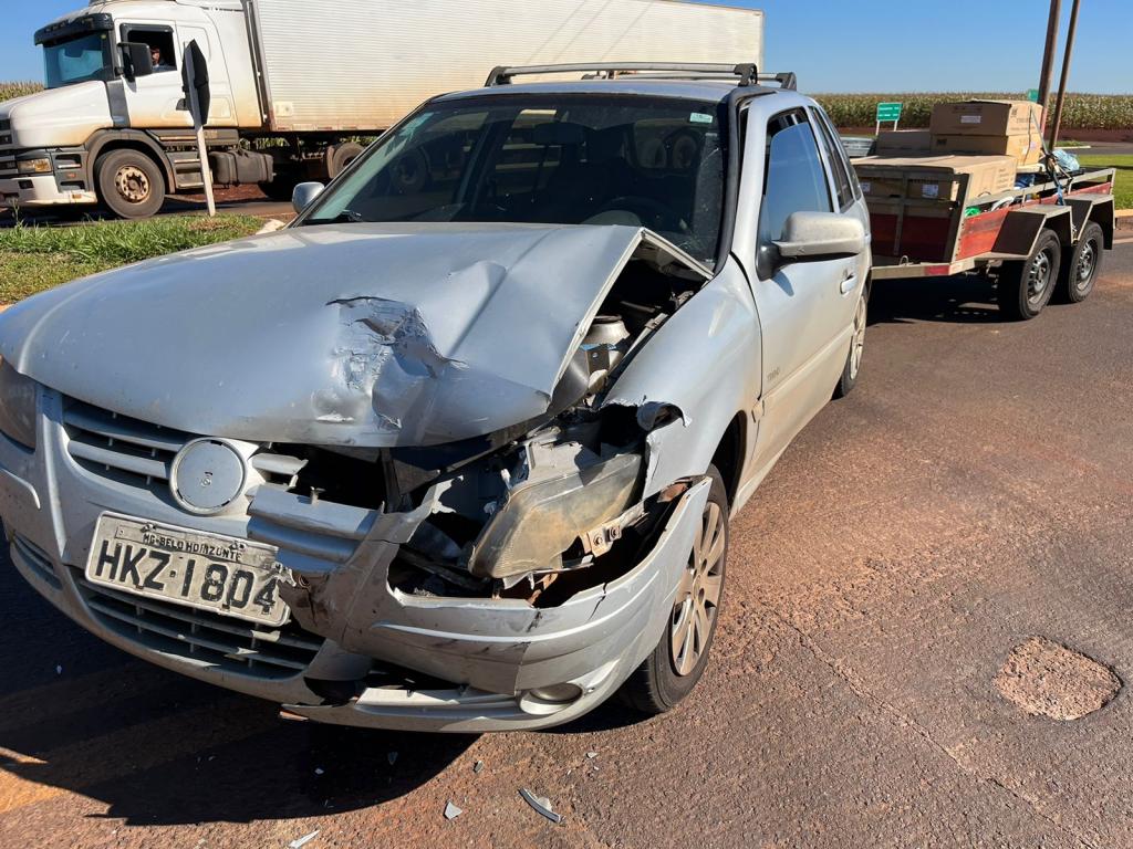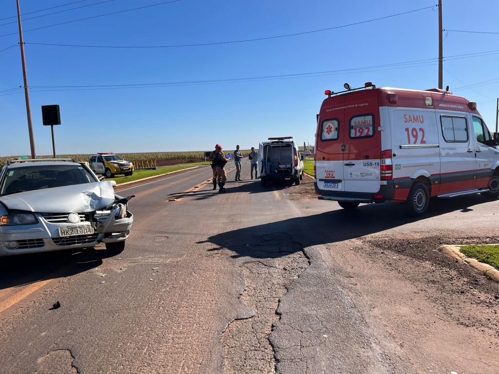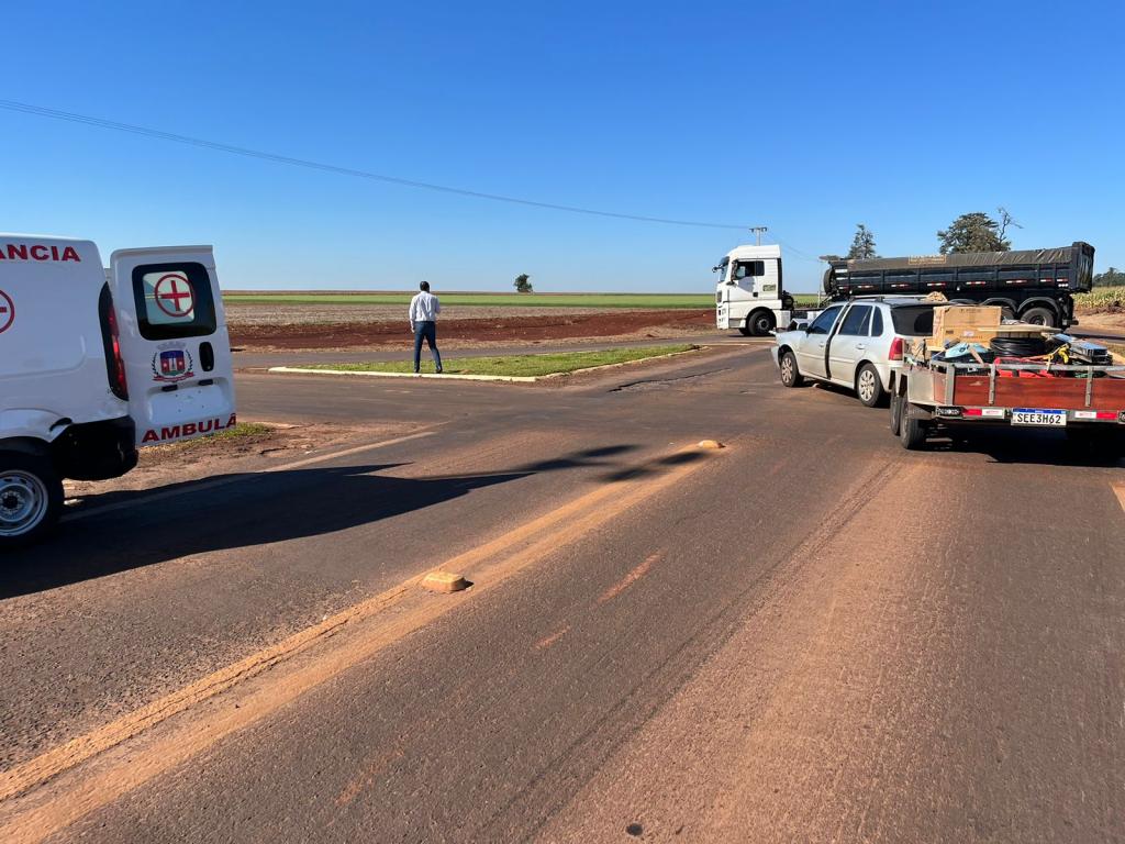 Um veículo Gol com placas de Belo Horizonte e uma ambulância do município de Francisco Alves colidiram no trevo de Maripá, PR 182 nesta terça-feira.