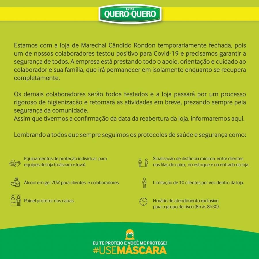 A Loja Quero-Quero, estabelecida na Avenida Maripá, centro da cidade, divulgou na sua rede social Facebook um anúncio sobre o fechamento.