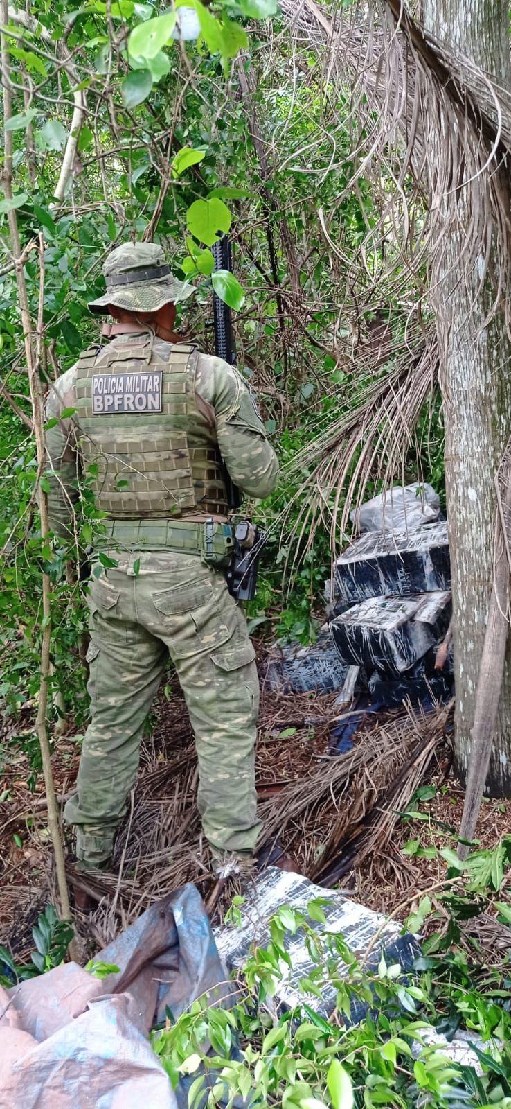 O Batalhão de Polícia de Fronteira em patrulhamento pelo município de Guaíra, na terça-feira, durante buscas em uma região de mata, localizou onze volumes de maconha, pesando aproximadamente 184kg e um volume de haxixe, pesando em torno de 2,5kg.