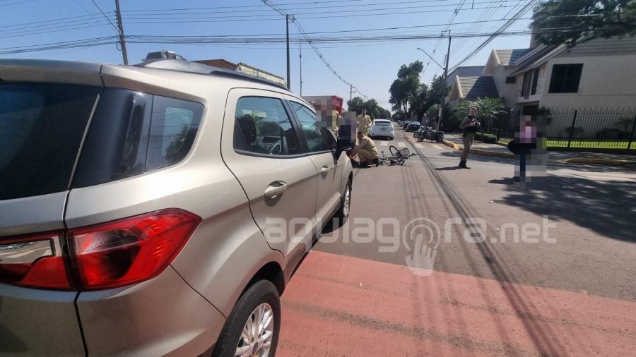 Na tarde desta terça-feira (27), por volta de 13h40, um acidente de trânsito foi registrado na esquina das ruas Pernambuco e 7 de Setembro. Uma mulher e uma criança ficaram feridas.