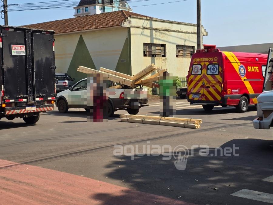 Durante o atendimento às vítimas no local, uma picape carregada com tábuas de madeira perdeu parte da carga no mesmo cruzamento em que minutos antes ocorreu o acidente.