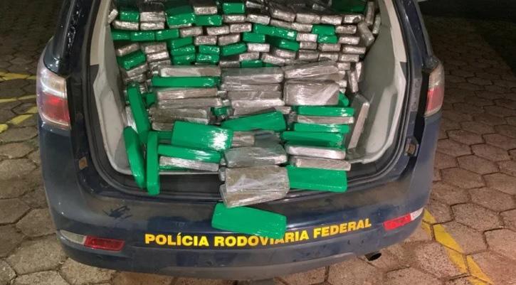 Mais de 300 kg de maconha foram apreendidos pela PRF (Polícia Rodoviária Federal), na madrugada desta terça-feira (11), na BR 277 em Céu Azul.