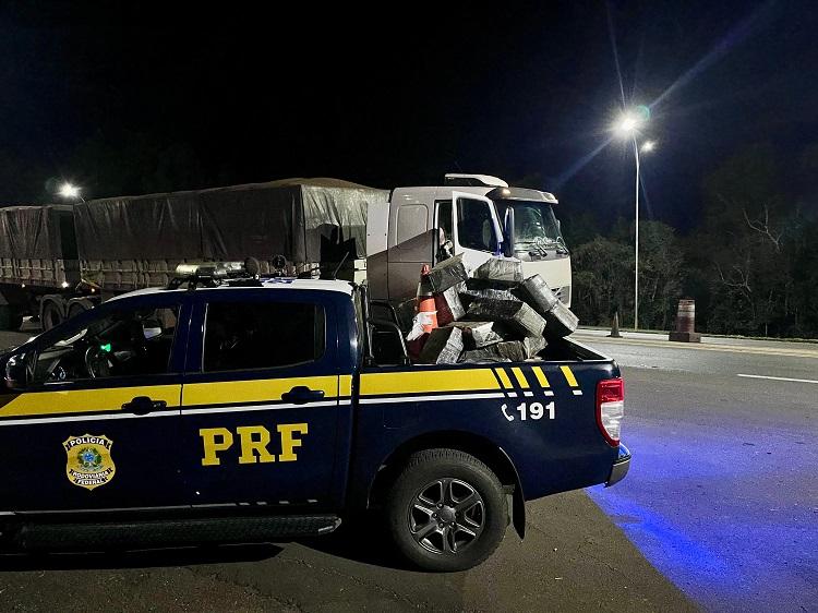 Durante a abordagem a um caminhão que transportava uma carga de soja com destino ao porto de Paranaguá, os policiais notaram algo suspeito na cabine do veículo. Ao vistoriarem o interior, encontraram diversas caixas com tabletes de maconha escondidos entre os objetos.