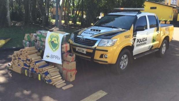 Mais de 500 quilos de maconha foram apreendidos pela Polícia Rodoviária Estadual durante uma perseguição pela PR 317.