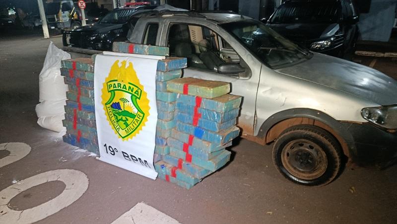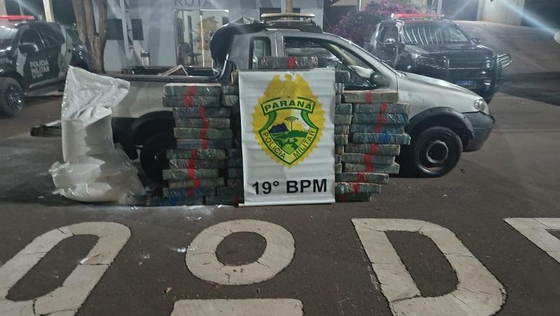 Uma grande apreensão de drogas foi realizada na noite desta quarta-feira (27) na PR-317, trecho de Ouro Verde do Oeste. Durante uma abordagem, policiais encontraram um veículo Fiat Strada carregado com maconha, cigarros e uma substância branca ainda não identificada.