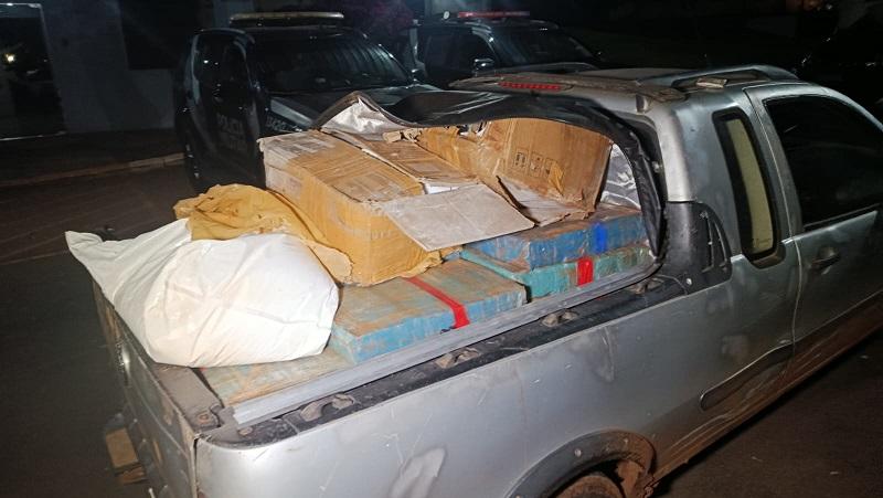 Além disso, foram apreendidas 35 caixas de cigarros. O veículo utilizado no transporte estava com placas adulteradas, sendo originalmente emplacado em Vilhena (RO).