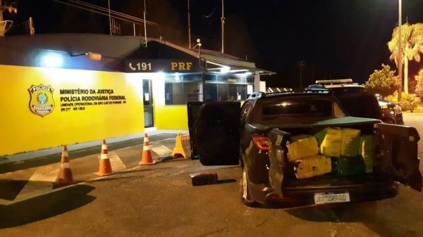 Um homem foi preso em flagrante ao ser pego com 736,1 quilos de maconha em uma caminhonete por agentes da Polícia Rodoviária Federal (PRF).