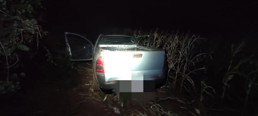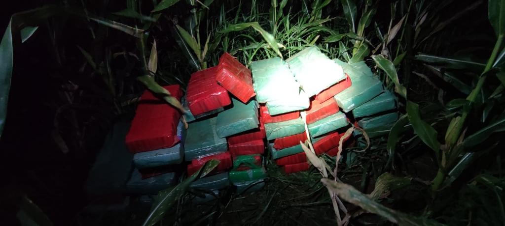 Durante a abordagem, o criminoso empreendeu fuga em meio à lavoura de milho a pé, não sendo alcançado. Quando das buscas foi constatado que em meio ao milharal haviam diversos fardos de maconha.