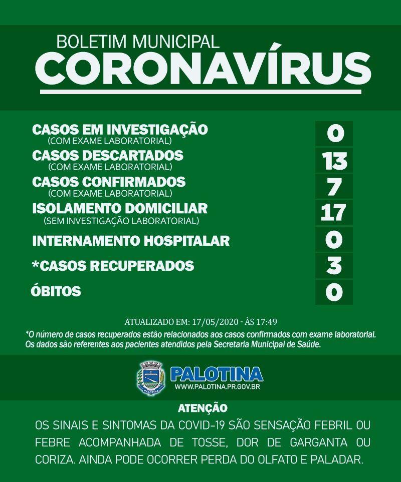 Palotina segue com 17 pessoas em isolamento domiciliar e nenhum caso em investigação.