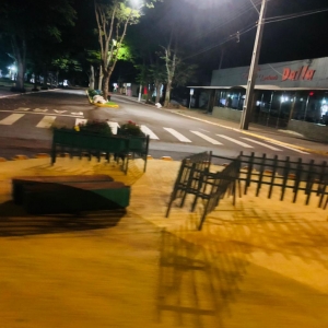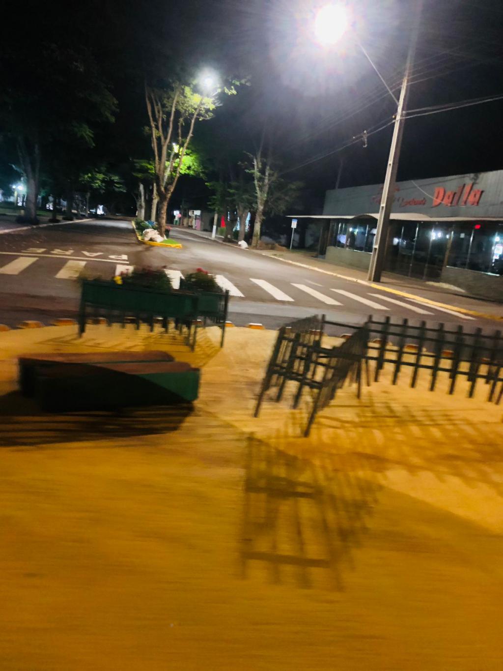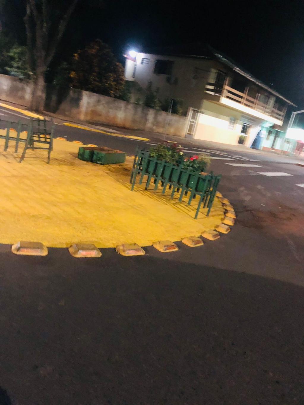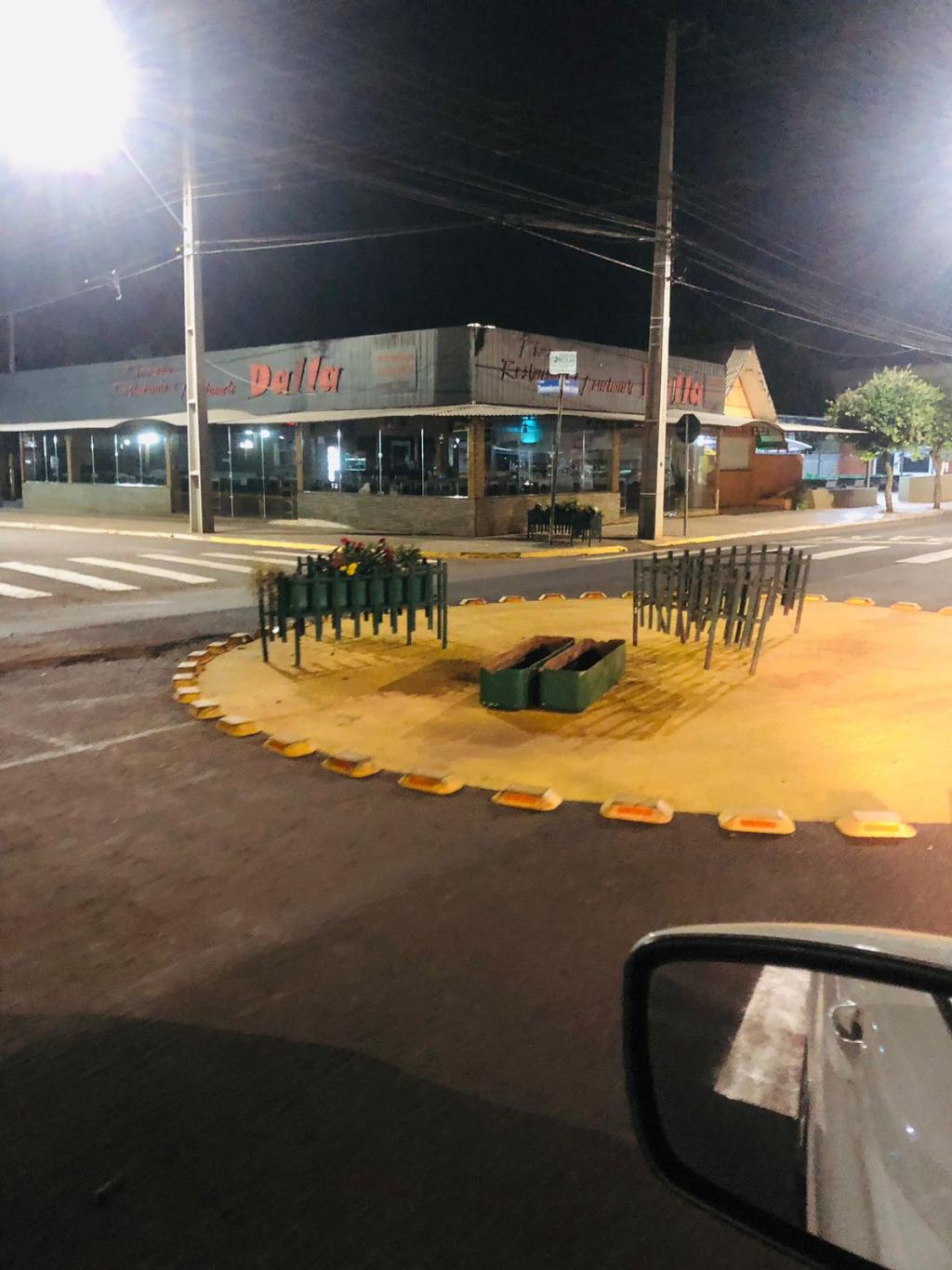Na noite desta quarta-feira (12), em Nova Santa Rosa, uma imagem foi flagrada na rotatória da avenida Santo Cristo esquina com a avenida Tucunduva. Tudo indica que algum condutor colidiu contra as floreiras novamente.