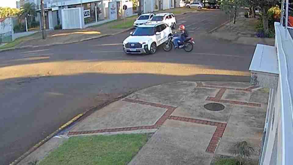 Segundo a motorista, o sol pode ter prejudicado a visibilidade no momento da travessia. Ela relatou aos policiais que chegou a olhar antes de avançar, mas não conseguiu enxergar a moto. Câmeras de segurança registraram o momento da forte batida.