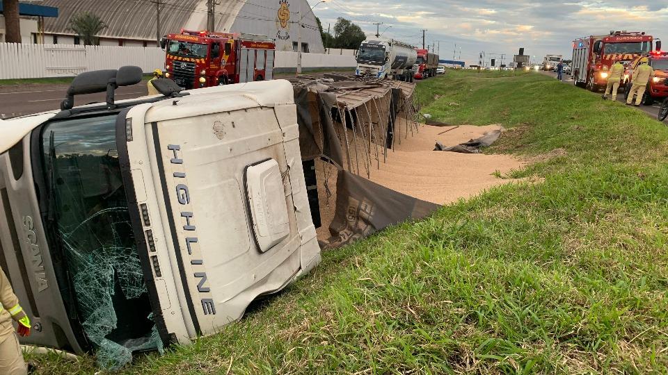 Mais um tombamento de caminhão foi registrado na região, desta vez, na BR-277 em Cascavel, onde um motorista de 43 anos ficou ferido na manhã desta terça-feira (17).