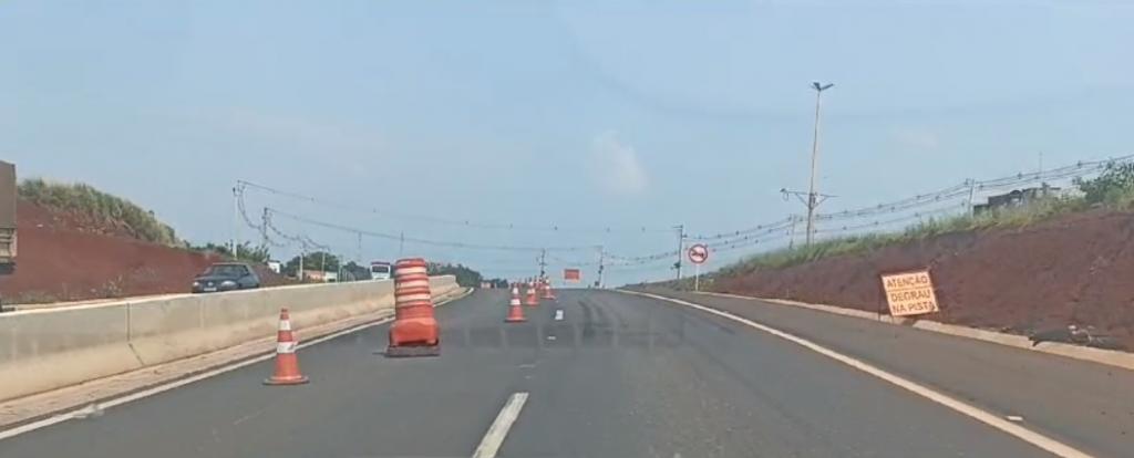 Cones de sinalização foram colocados na rodovia próximo ao seguimento aberto, até o seu final.