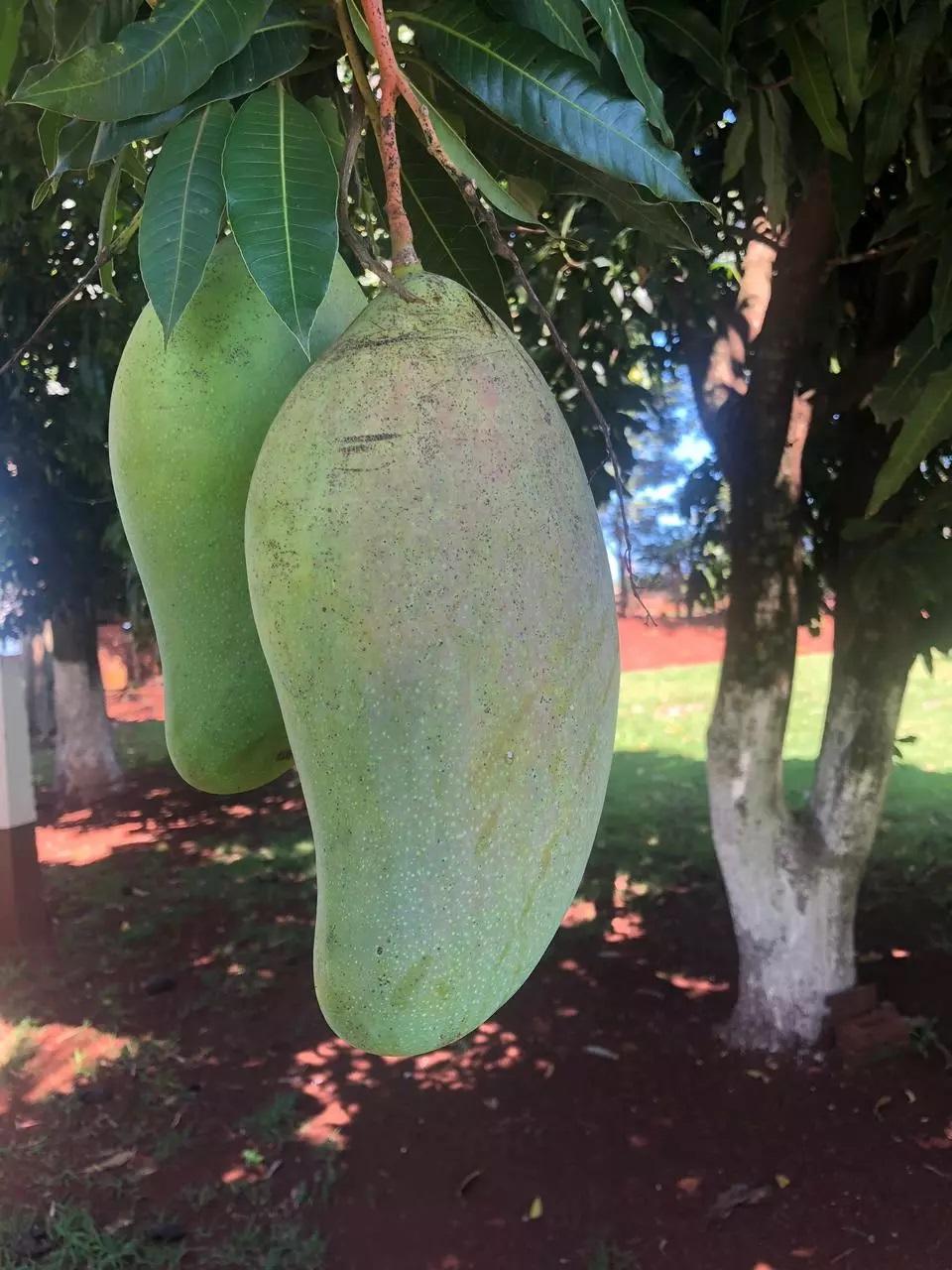 Plantada há cerca de oito anos, uma mangueira que produz frutos de até 3,6 quilos intriga o engenheiro agrônomo e produtor rural Otávio Perin, de 67 anos, morador de Maringá.
