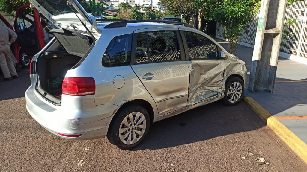 Na manhã de hoje (22), um veículo Saveiro trafegava pela rua Panambi e um SpaceFox seguia pela rua Coronel Vicente no Jardim La Salle em Toledo e no cruzamento das vias aconteceu a batida.