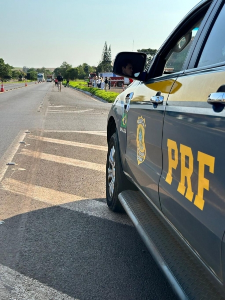 A Polícia Rodoviária Federal (PRF) realiza operação para orientação do trânsito e acompanhamento de manifestação popular que acontece no quilômetro 650 da BR-277, em Matelândia, na manhã desta quarta-feira (11).