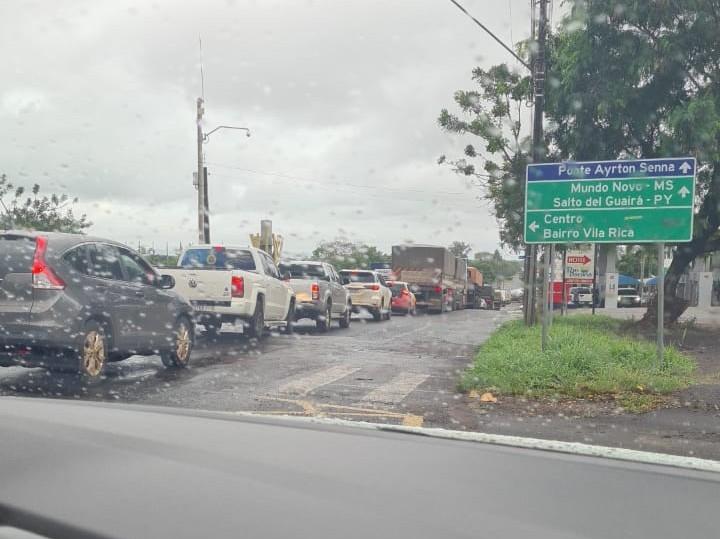 "BR-163, km 350, Guaíra, Ponte Ayrton Senna, interdição total em ambos os sentidos, sem previsão de liberação, em virtude de manifestação popular, com cerca de 15 manifestantes, Não há informação sobre extensão do congestionamento."