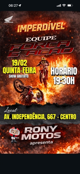 O evento é promovido pela Rony Motos e deve reunir famílias, apaixonados por motociclismo e admiradores de esportes radicais. Formada por pilotos profissionais, a equipe executa manobras de alta performance, com empinadas, saltos, equilíbrio extremo e apresentações sincronizadas que impressionam o público.