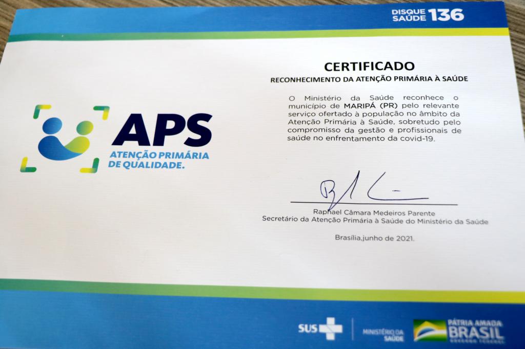 O Município de Maripá está entre os quatro melhores municípios do Paraná e entre os 225 melhores do Brasil na qualidade da atenção primária à saúde. É o que mostra uma avaliação realizada pelo Ministério da Saúde em 5.570 municípios, que reconhece iniciativas adotadas por municípios brasileiros para a manutenção de pontuação em indicadores considerados fundamentais para a área. O certificado de Atenção Primária de Qualidade foi entregue à Secretaria Municipal de Saúde na sexta-feira (16) e reconhece, sobretudo o compromisso da gestão e profissionais de saúde no enfrentamento da Covid-19.