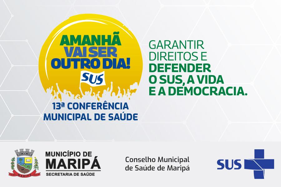 A 13ª Conferência Municipal da Saúde de Maripá será realizada no dia 3 de março pelo Conselho Municipal de Saúde (CMS), juntamente com a Secretaria de Saúde. Com o tema “Garantir Direitos e Defender o SUS, a Vida e a Democracia – Amanhã vai ser outro dia”, a Conferência será precedida pelas pré-conferências, que vão acontecer na próxima semana.