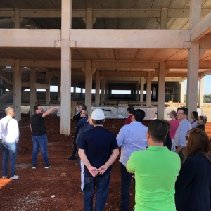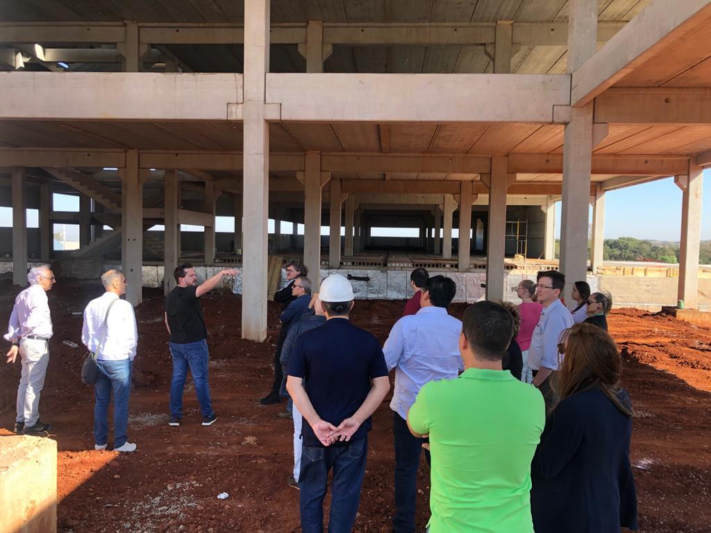 A comitiva liderada pelo diretor regional da cooperativa, Hiroshi Nishitani, foi recepcionada pelo representante do Grupo Blume Administradora de Bens, Daniel Felipe Niedermeyer, e pelo engenheiro civil Vilson Rheinheimer, responsável pela obra.
