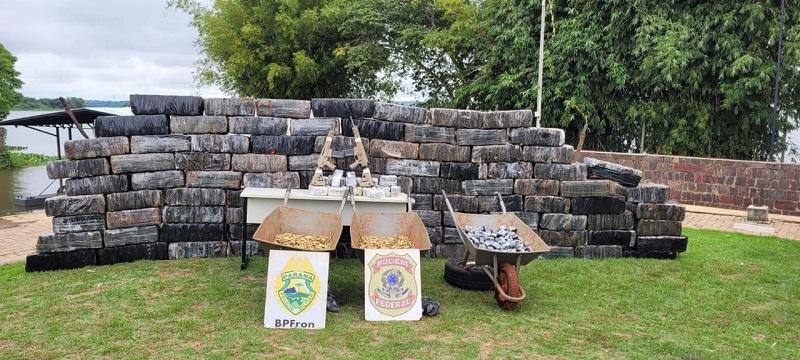 Durante uma ação integrada realizada nesta terça-feira (15), agentes do Batalhão de Polícia de Fronteira (BPFron), da Polícia Militar do Paraná, e do Núcleo Especial de Polícia Marítima da Polícia Federal (NEPOM/PF), apreenderam uma grande quantidade de entorpecentes e armamentos na zona rural de Mercedes, no Oeste do Paraná.