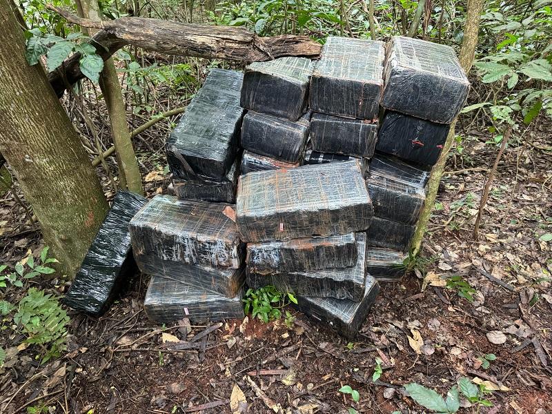 A operação ocorreu durante patrulhamento de rotina às margens do Rio Paraná, quando os policiais avistaram uma embarcação suspeita atracando no lado brasileiro da fronteira. Diante da possibilidade de atividade criminosa, as equipes realizaram incursões na mata próxima ao rio e localizaram diversos fardos de drogas escondidos em diferentes pontos.