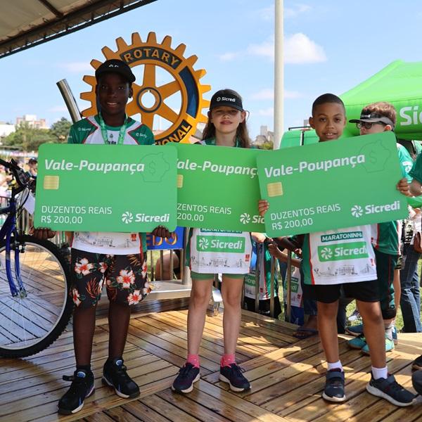 A Sicredi Progresso também premiou por sorteio, com três vales-poupança de R$ 200,00 para incentivar a educação financeira, três crianças participantes da Meia Maratoninha, cujos ganhadores foram: Laura dos Santos Dick, Vinicius Miguel da Silva e Eslandjy Jean.
