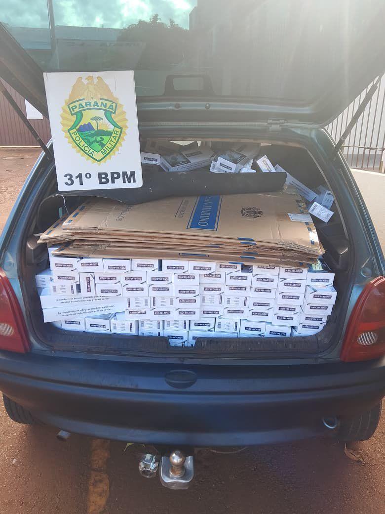A Polícia Militar de Palotina apreendeu, na manhã desta terça-feira (13), uma carga de cigarros contrabandeados que estava sendo transportada em um veículo Chevrolet Corsa. A abordagem aconteceu na rodovia que liga o município ao distrito de São Camilo, em meio a fiscalização de rotina.