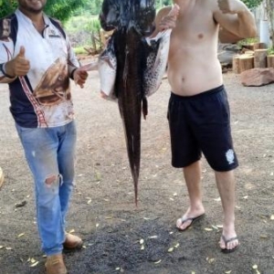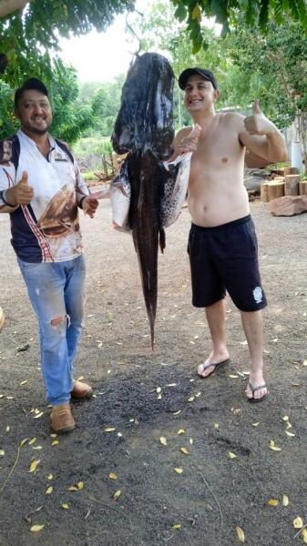 Eles capturaram um exemplar da espécie pintado. O peixe pesou 25,5 kg.